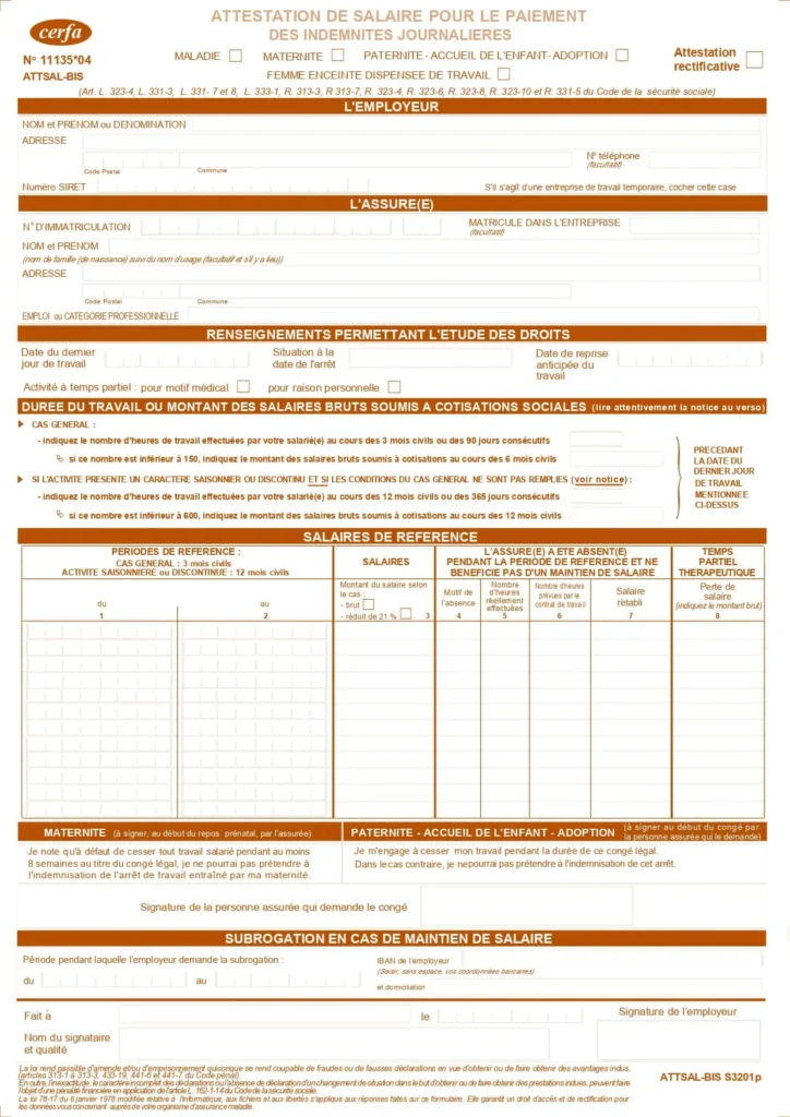 Ce document permet à l’organisme social de calculer les indemnités journalières auxquelles le salarié a droit. Autrement dit, c’est grâce à cette attestation que votre salarié pourra être indemnisé pendant son absence. No pressure, comme diraient nos amis d’outre-Manche !